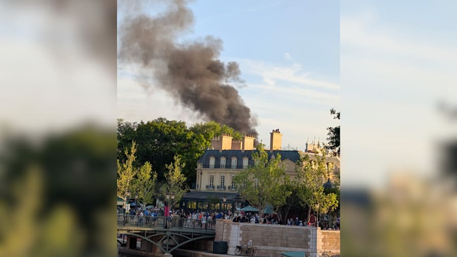 Dark smoke can be seen billowing across Walt Disney World’s EPCOT as a fire breaks out.